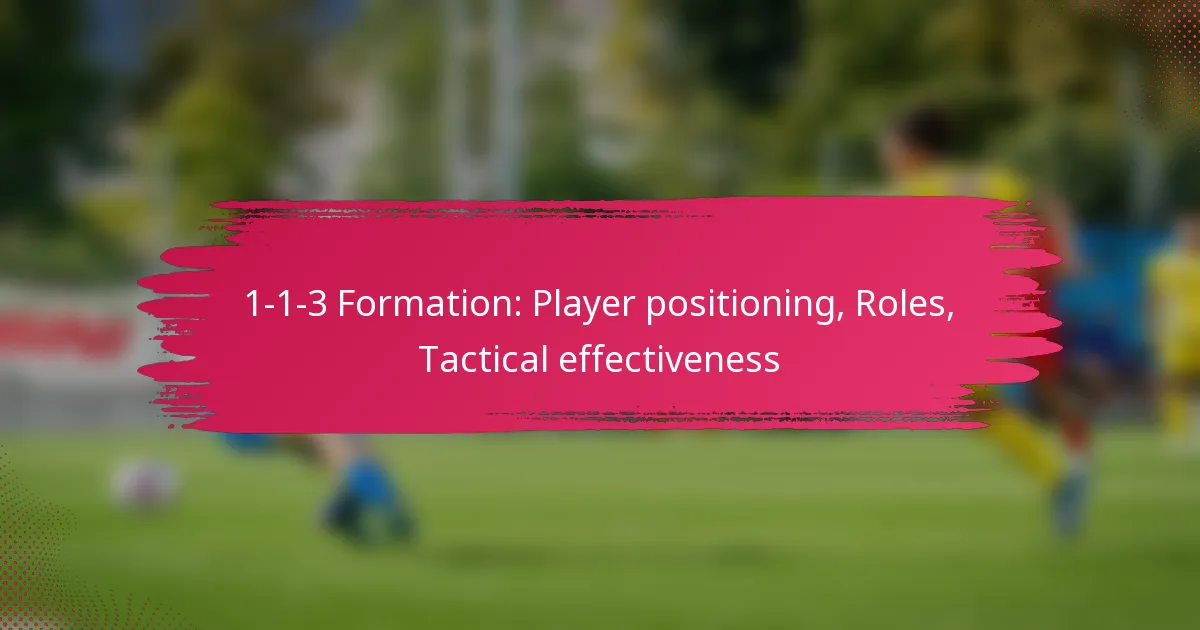 The 1-1-3 formation is a tactical setup that features one player in the back, one in the midfield, and three positioned forward, creating a balanced approach to both defense and offense. This arrangement allows for flexibility in player roles, enhancing teamwork and spatial awareness, which are essential for adapting strategies throughout the game.